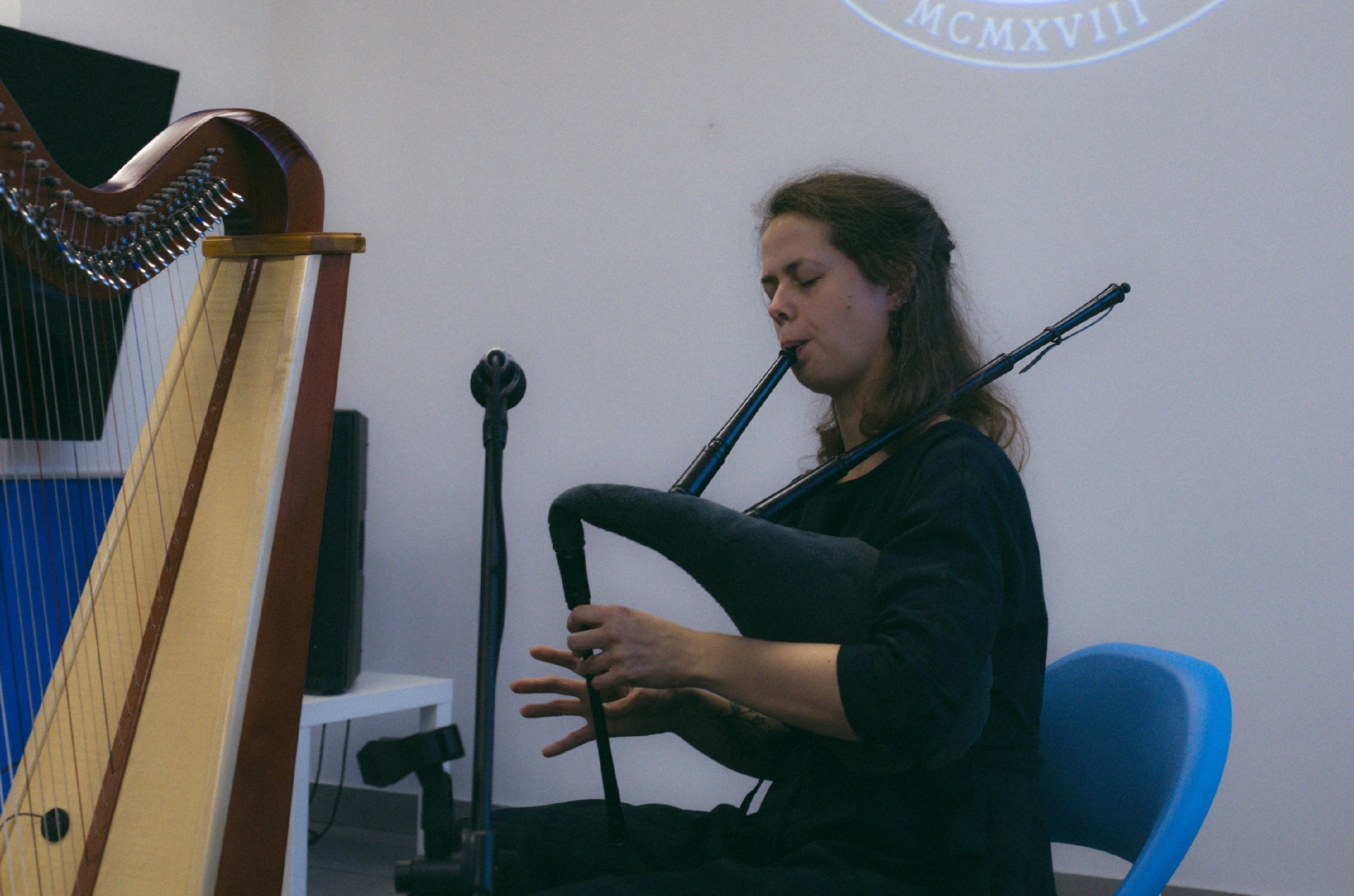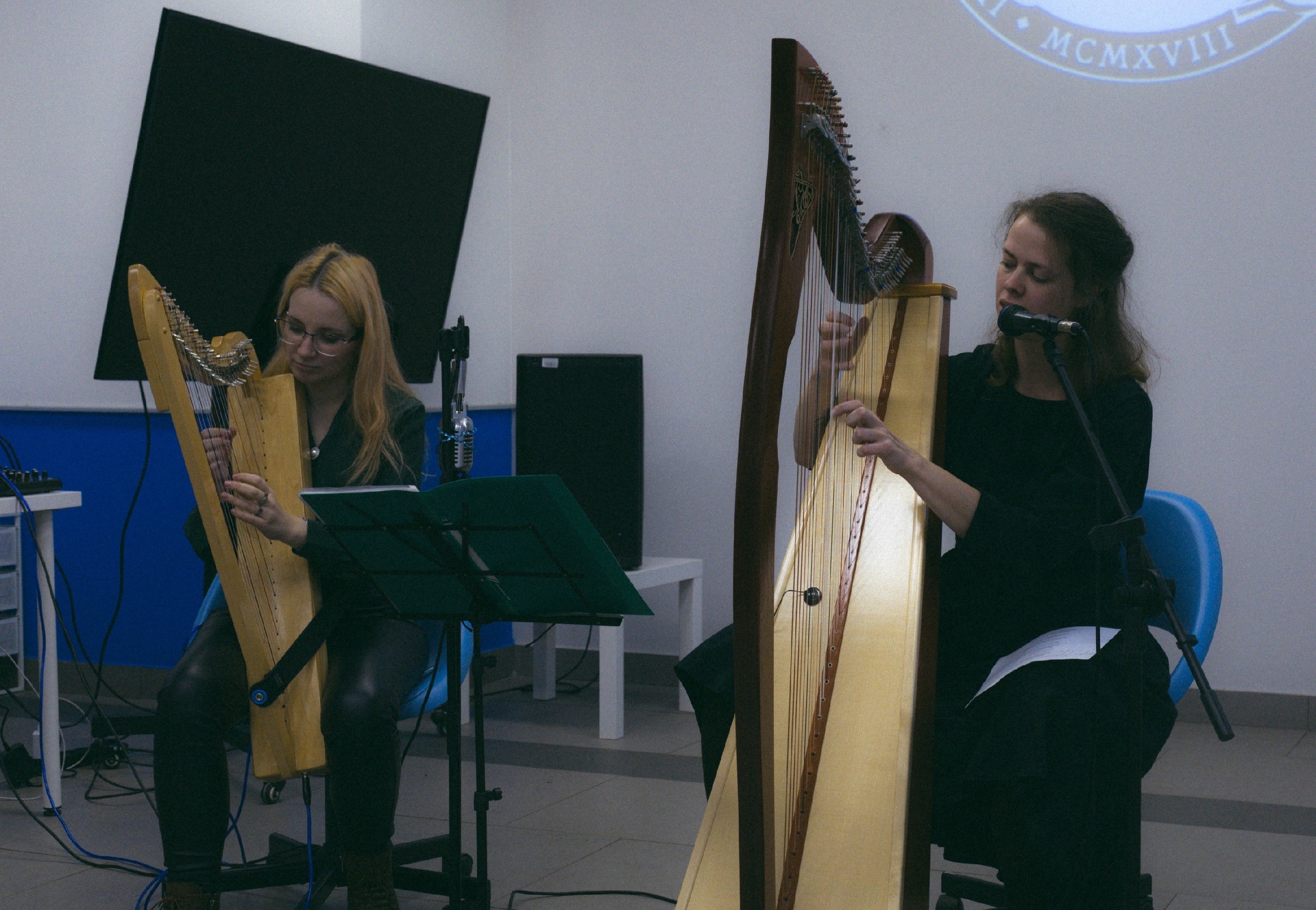Вечер, организованный дуэтом «Их тут нет», подарил гостям удивительные истории о музыке далекой эпохи. В этот раз в клубе «Bestiarium» выступал дуэт Софьи Никулиной и Татьяны Громовой («Их тут нет») зал наполнился звуками, которые могли слышать жители Европы много веков назад. Ребята узнали, чем современная игра на арфе отличается от средневековой, и почему некоторые аккорды, считающиеся сегодня благозвучными, в те времена были строгим нарушением правил. Апогеем встречи стал урок средневековых танцев. Под руководством музыкантов в зале быстро образовался большой дружный хоровод из наших ребят, студентов, преподавателей и гостей, разучивших движения под средневековые мелодии. Вечер в «Bestiarium» получился по-настоящему теплым, живым и волшебным. Он показал, что история — это не скучные даты в учебнике, а живой организм, который можно почувствовать через музыку, танец и общие эмоции. Эта встреча оставила у десятиклассников массу ярких впечатлений и новый взгляд на эпоху Средневековья.![]() |